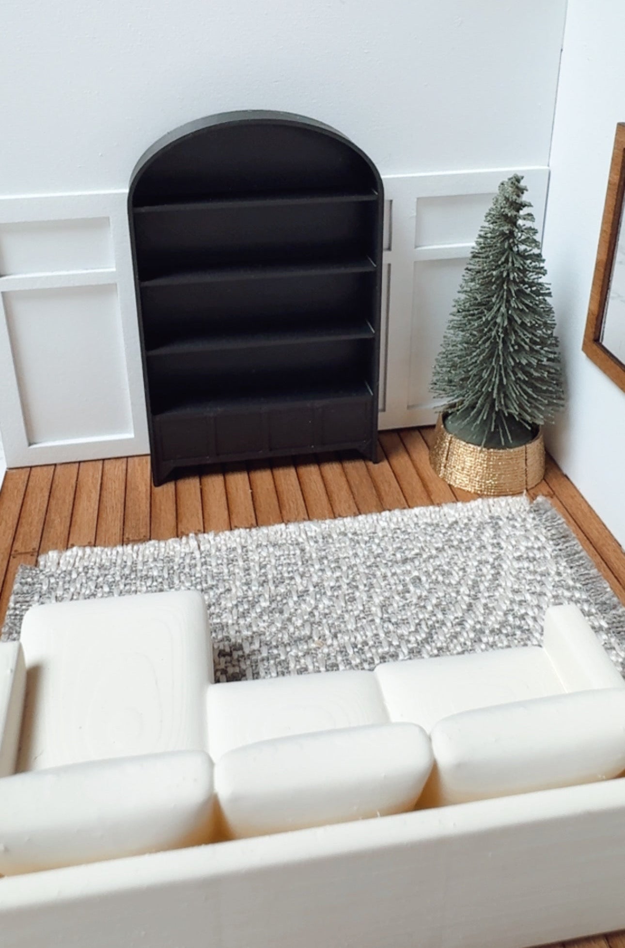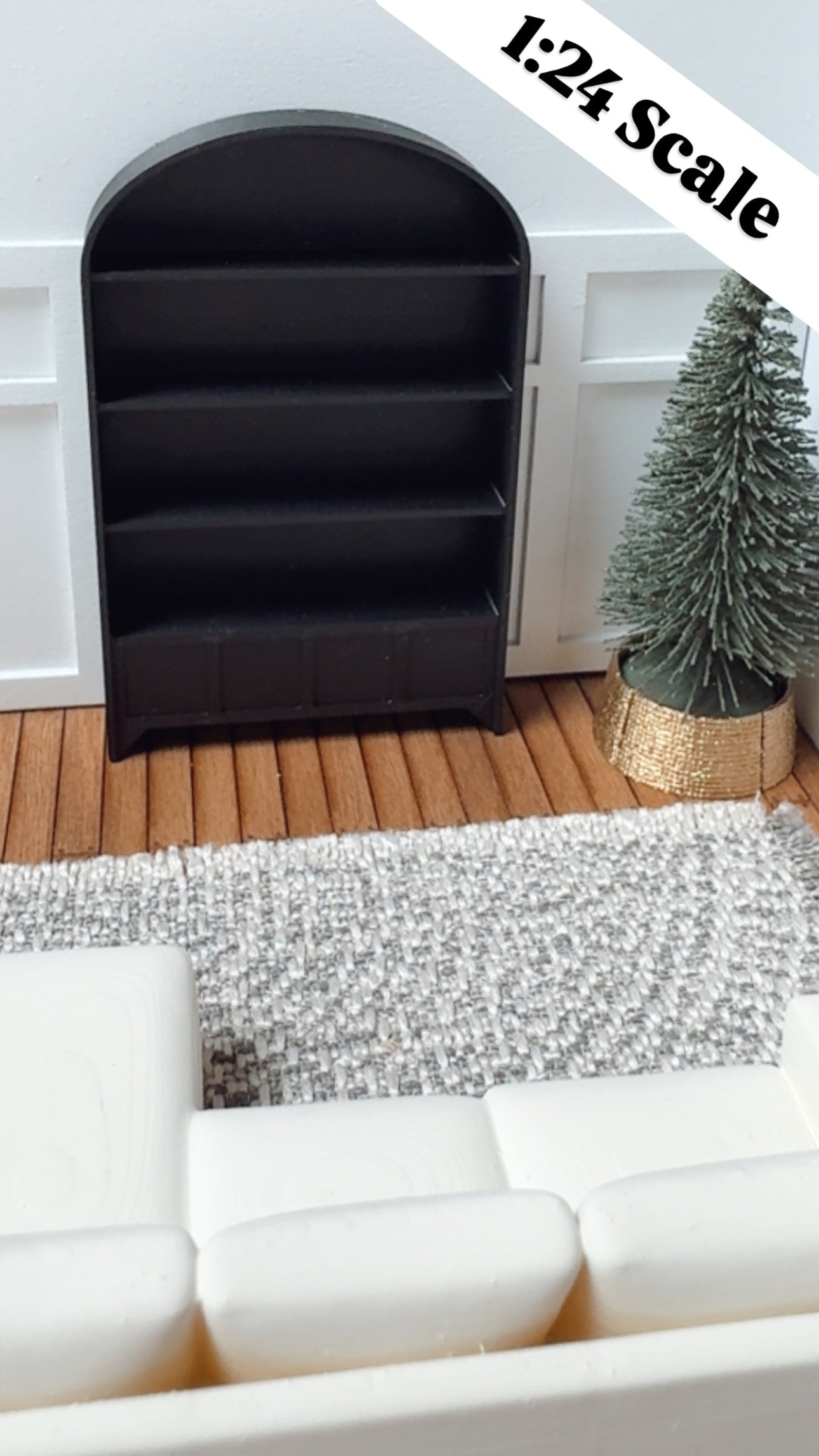 These modern arched bookshelves are the perfect accent for your 1:24 scale dollhouse or room box. Each shelf is designed with clean lines and a paneled base for a contemporary yet timeless look.