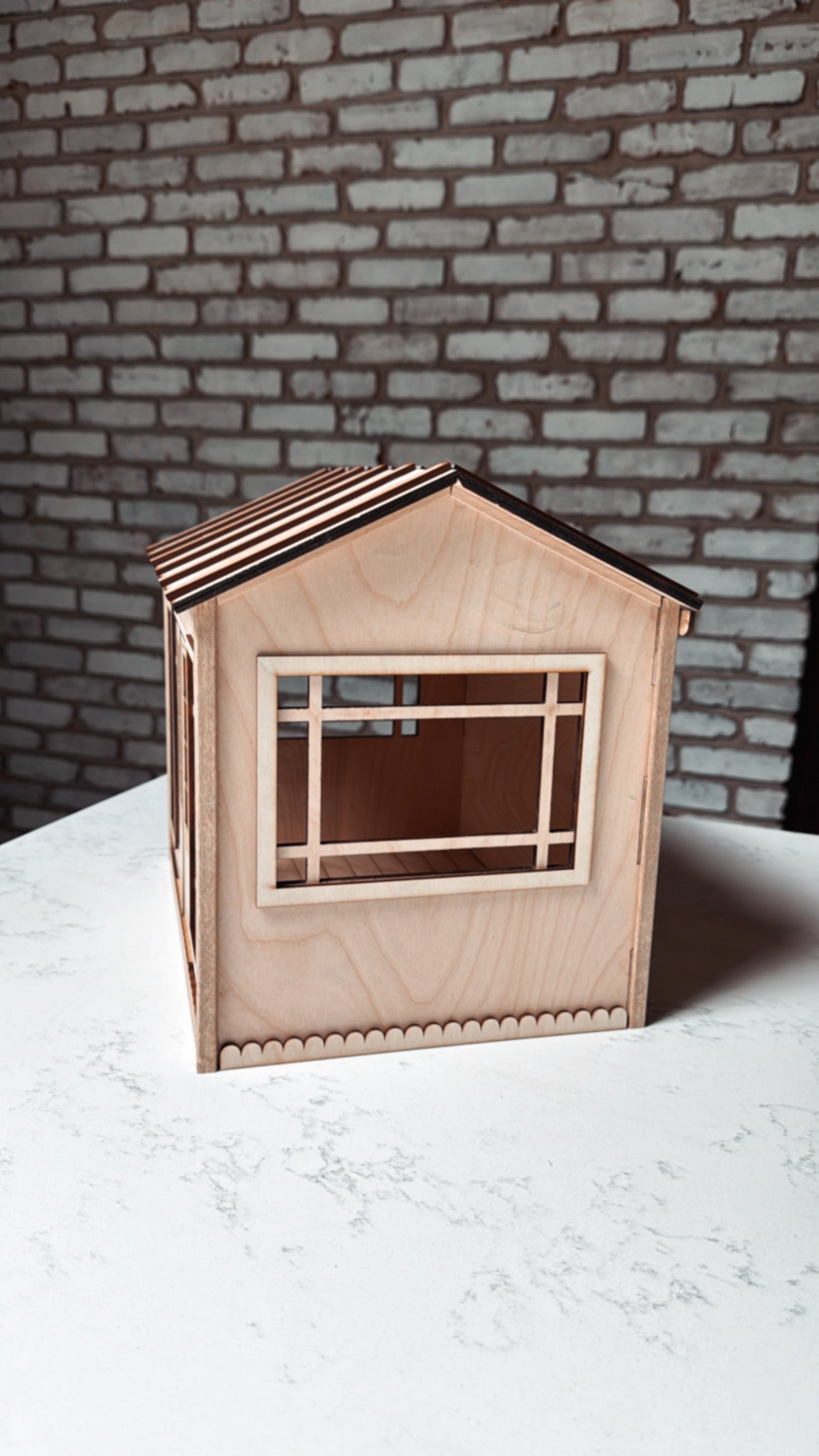 Made from 1/4” unfinished wood, it’s ready to be customized with paint, stain, wallpaper, or shingles to suit your unique style.